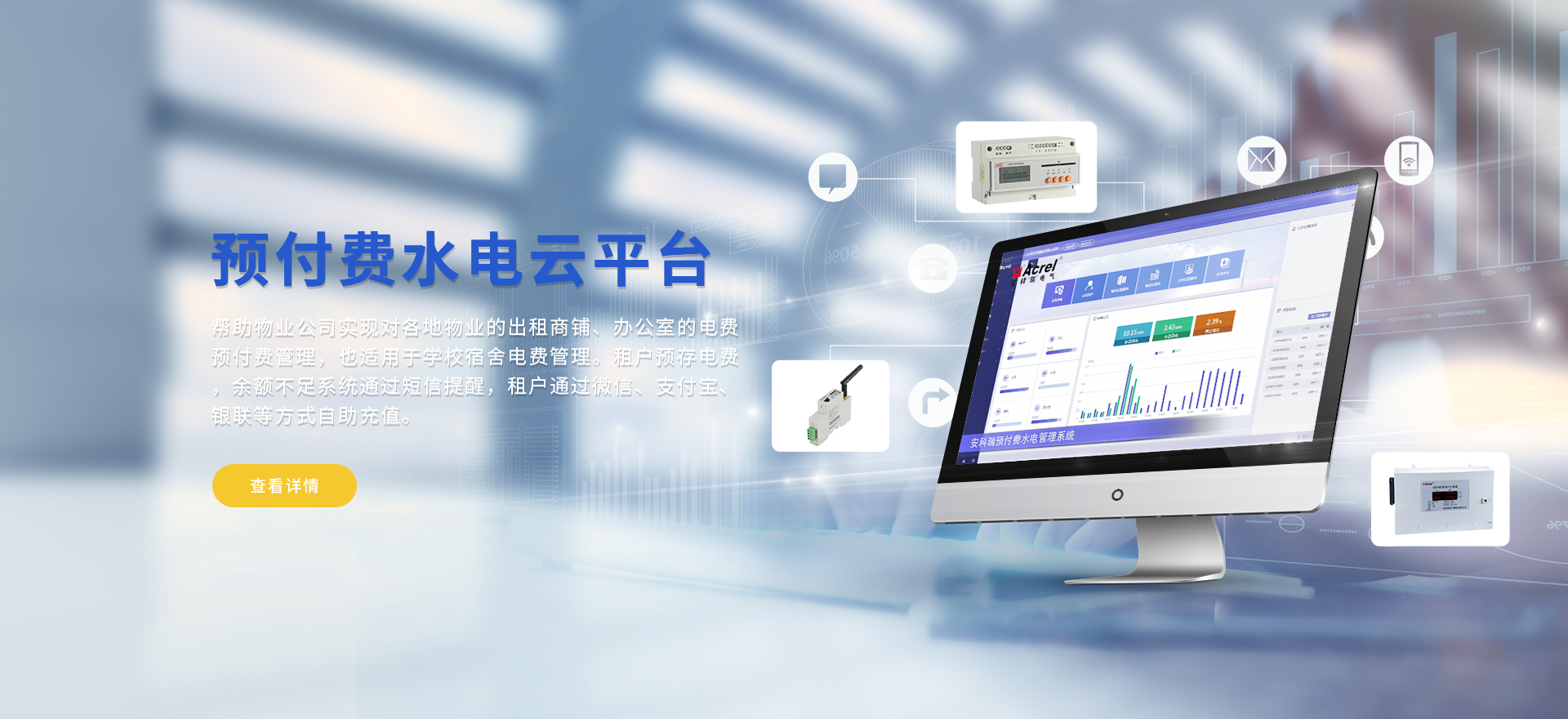 安科瑞提供的解決方案包括Acrel-EIoT能源物聯(lián)網(wǎng)云平臺變電所運(yùn)維云平臺安全用電管理云平臺環(huán)保用電監(jiān)管云平臺智慧消防云平臺能源管理云平臺、工業(yè)企業(yè)能源管控平臺、遠(yuǎn)程預(yù)付費(fèi)云平臺餐飲油煙監(jiān)管云平臺電動汽車/電瓶車充電樁收費(fèi)管理云平臺、電力監(jiān)控/無線測溫系統(tǒng)、電能質(zhì)量治理系統(tǒng)、電氣火災(zāi)監(jiān)控系統(tǒng)消防設(shè)備電源監(jiān)控系統(tǒng)防火門監(jiān)控系統(tǒng)應(yīng)急照明和疏散指示系統(tǒng)、智能照明控制系統(tǒng)、醫(yī)用隔離電源絕緣監(jiān)測系統(tǒng)等,幫助用戶實(shí)現(xiàn)能源智能化、可視化、精細(xì)化管理,提高用能效率和用能安全,為企業(yè)節(jié)能降耗和實(shí)現(xiàn)能源數(shù)字化建設(shè)提供數(shù)據(jù)服務(wù)。